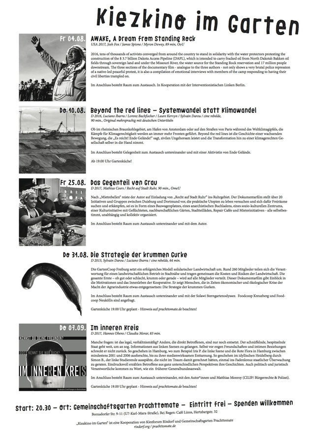 Das Gartenkino ist kostenlos, ihr seid alle herzlich eingeladen, vorbeizuschauen.